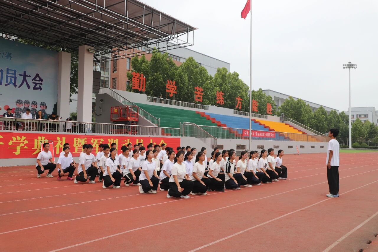 在会操过程中,同学们动作规范、整齐划一,无论是立正、稍息、跨立,还是行进间的齐步走、跑步走,都做得一丝不苟。他们的眼神坚定,充满自信,每一个动作都展现出军训期间的良好状态和顽强意志。同学们的汗水湿透了衣衫,但他们依然以最标准的姿态完成了每一个动作。